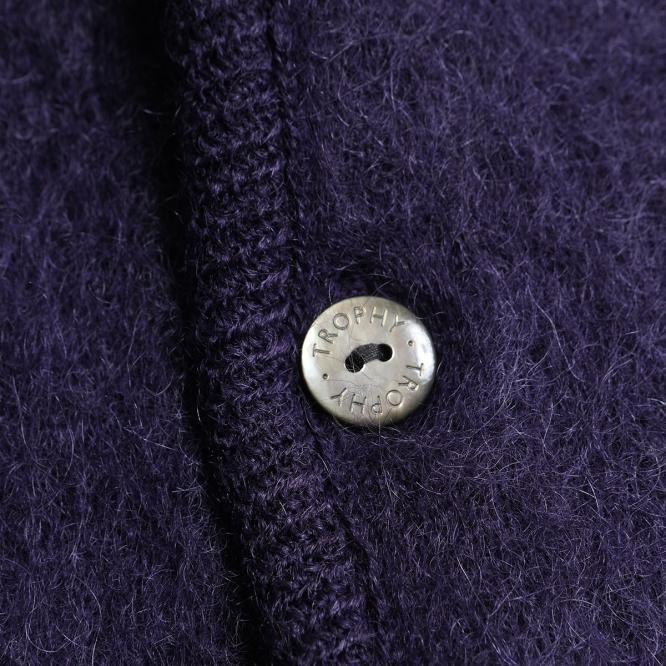 刻印入りオリジナルシェルボタンを使用したカーディガン。