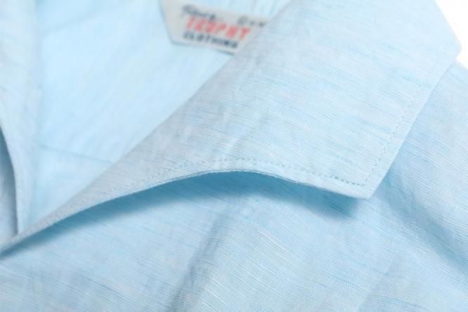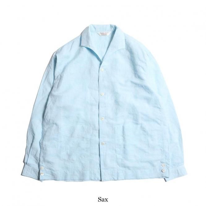 ヴィンテージテキスタイルを参考にしたハケ目柄リネンコットン生地を使ったハバナシャツ。