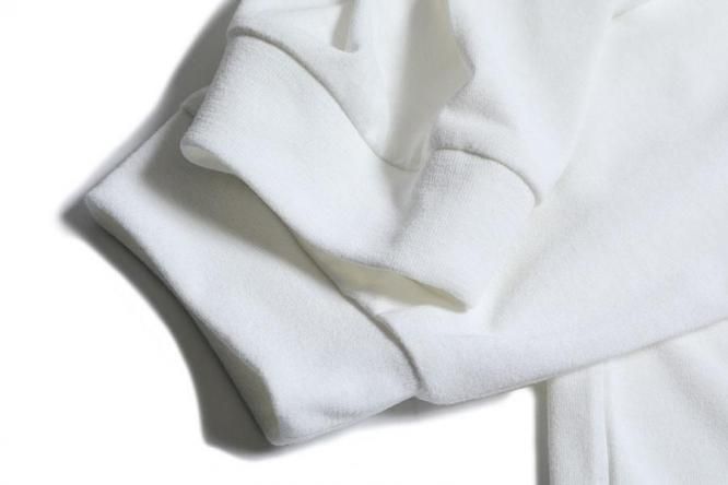 衿はバインダーネック仕様、裾はダブルステッチで縫製しています。