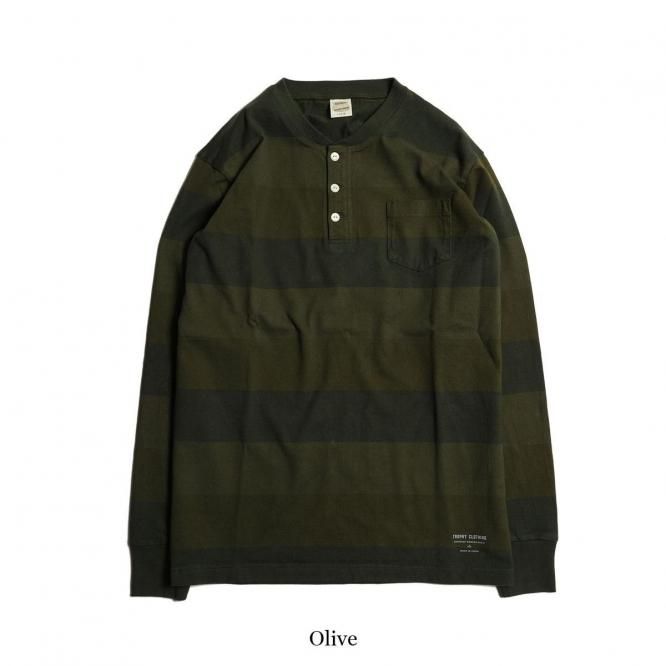 ヘンリーネックデザインは、一枚着はもちろん、ワークシャツやデニムジャケットのインナーとしても相性抜群です。