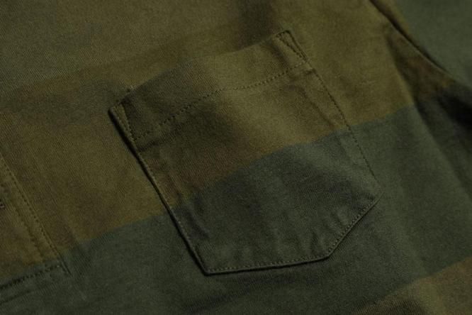 胸ポケット部分はボーダー柄を丁寧に合わせた配置で、細部までこだわりを感じられる仕上がり。