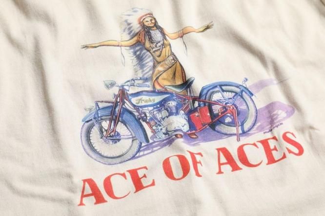 モチーフは、TROPHY GENERAL STOREに佇む1928年Indian 101 Scoutと、ウォーボンネット(羽飾り)を纏い両手を広げるピンナップガール。