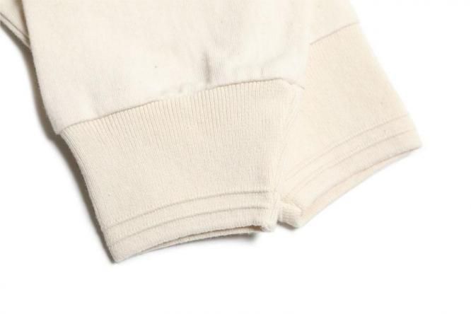 裏毛の編み機を使用する事で、テンションをかけず生地がストレスがかからない為非常に柔らかくふっくらとした生地で編み上がります。