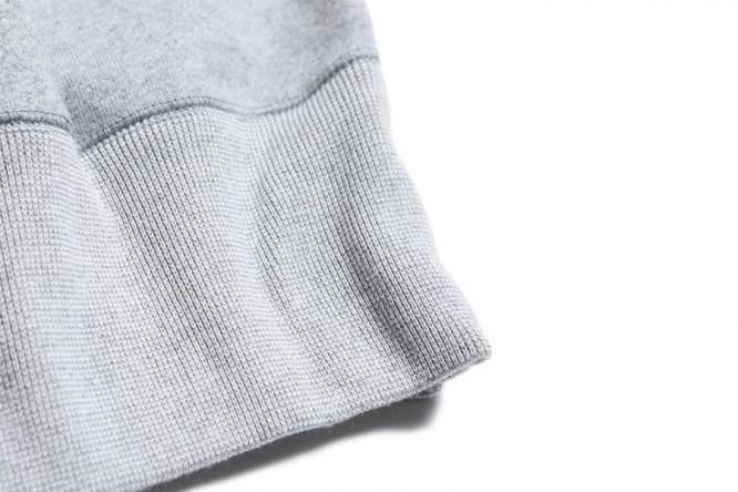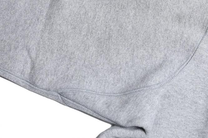 裏起毛:希少な丸胴対応の起毛機で加工し、ヴィンテージスウェット同様の質感を再現。