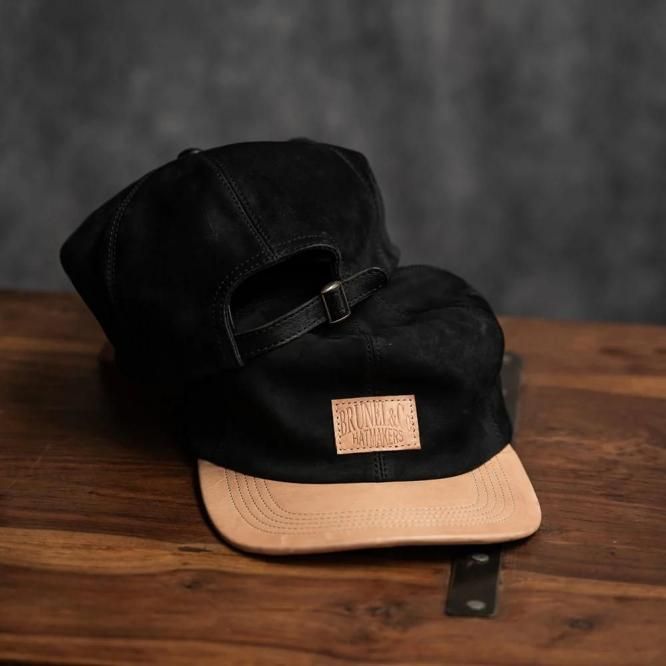 フロントにはBRUNEL&Co.HATMAKERSのロゴを素押ししたレザータグ、シルエットはベースボールキャップに比べて角ばったデザイン。深さはベースボールキャップより少し深めになっています。