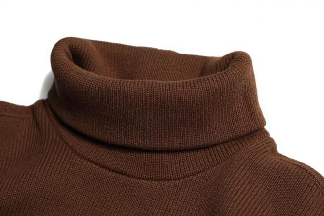 海で着用していた時代背景をイメージし制作したナバルハイネックニット。