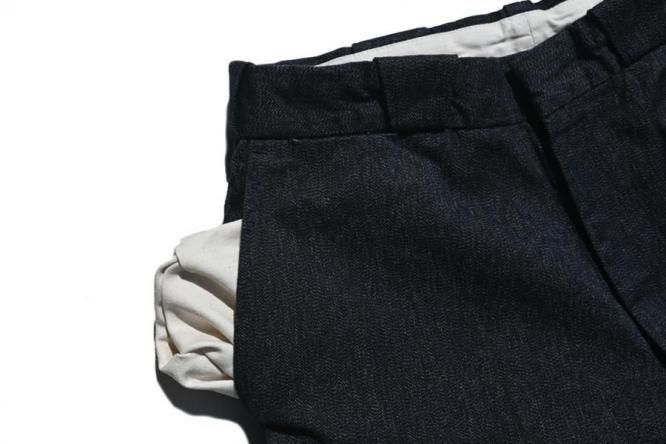デニム同様、岡山の産地で生まれるヘヴィウエイトのコバートツイルはワークテキスタイルながらテーラー要素を併せ持ちます。