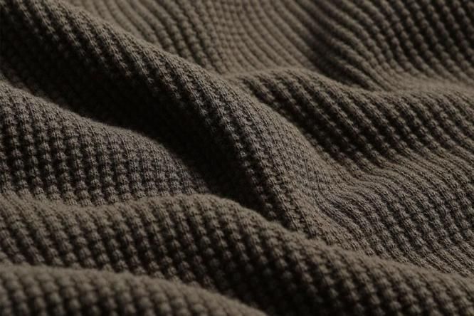 ワッフルはサーマルと同様の編みですが、サーマルよりも型崩れが少なく、肌への接触面が少ない為肌離れもよく空気を溜めやすい特徴があります。