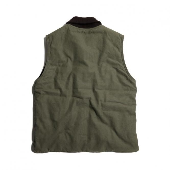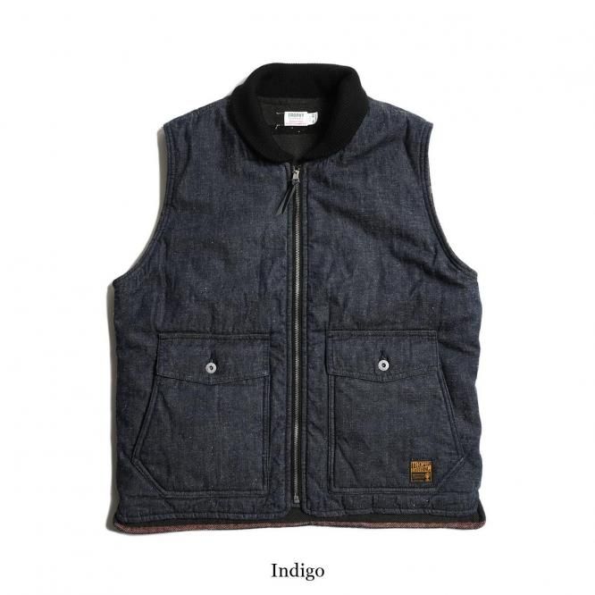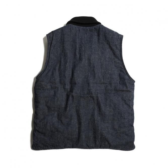 ネップを織り込んだ11oz インディゴデニムとヴィンテージ仕上げの粗野な質感のコットンオックス、裏地はカラーネップを織り込み圧縮紡績したブランケットを採用したストームベスト。